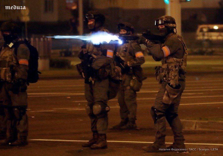 В ночь на 11 августа по всей Беларуси продолжились массовые протесты недовольных результатами президентских выборов. Силовики, или как их прозвали демонстранты, "бандиты в чёрном", применяли дубинки, светошумовые гранаты, водометы, резиновые пули.