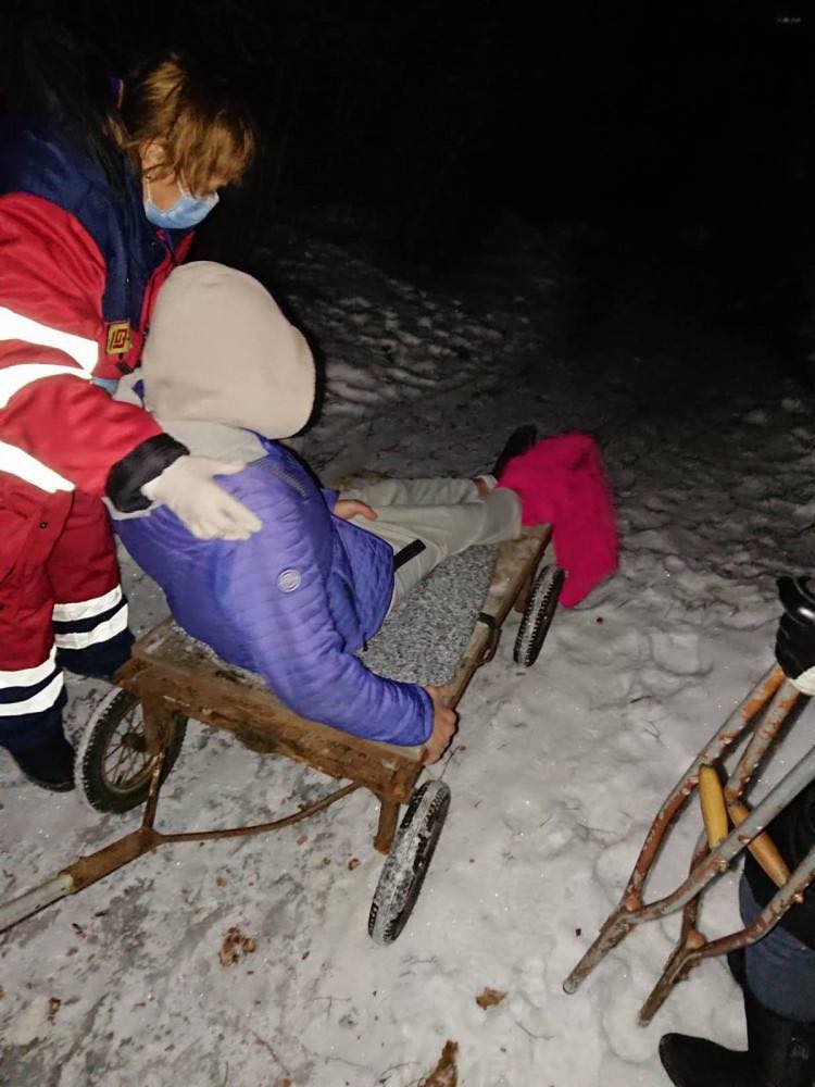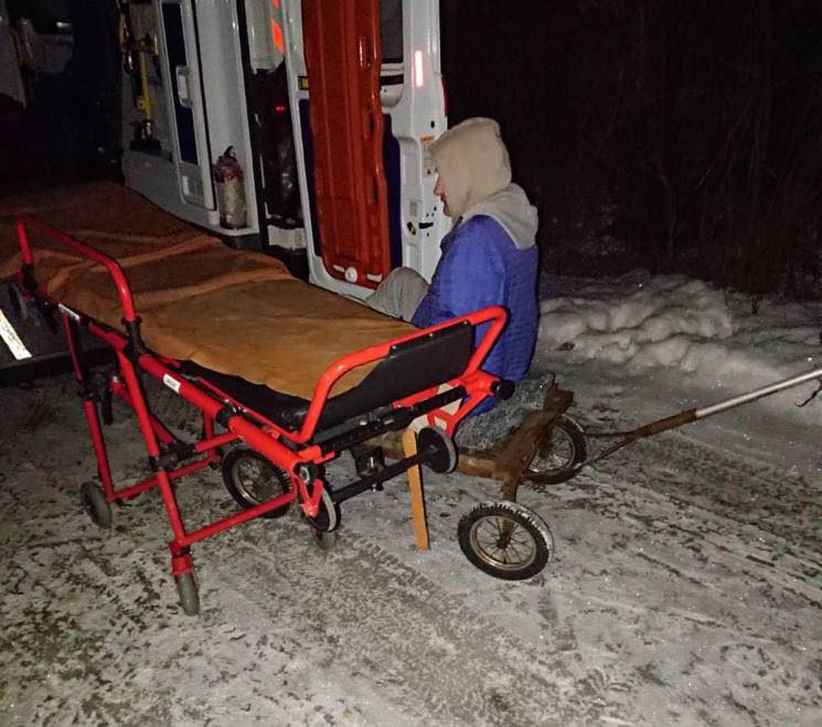 Под Харьковом карета "скорой помощи" не смогла добраться до пациента из-за плохой дороги и гололеда, и медикам пришлось сначала идти к нему пешком более километра, а затем - на хозяйственной тележке - транспортировать мужчину обратно к автомобилю для дальнейшей госпитализации в больницу.