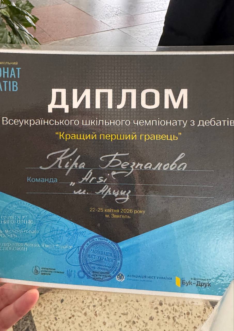 Попри дебют, арцизькі школярі впевнено заявили про себе. А капітан команди Кіра Безпалова отримала звання кращого першого гравця. Така відзнака є вагомим результатом навіть для досвідчених «майстрів дебатів»!