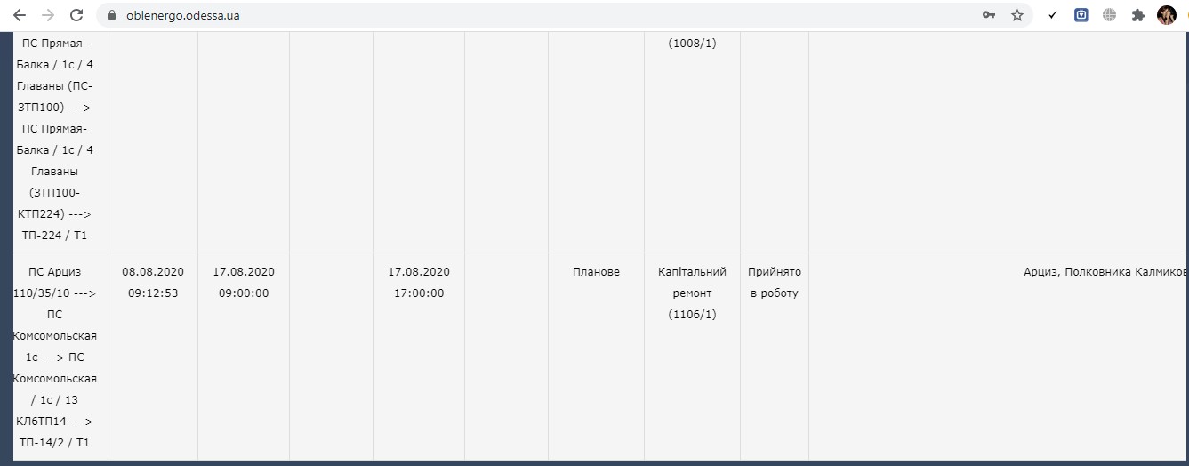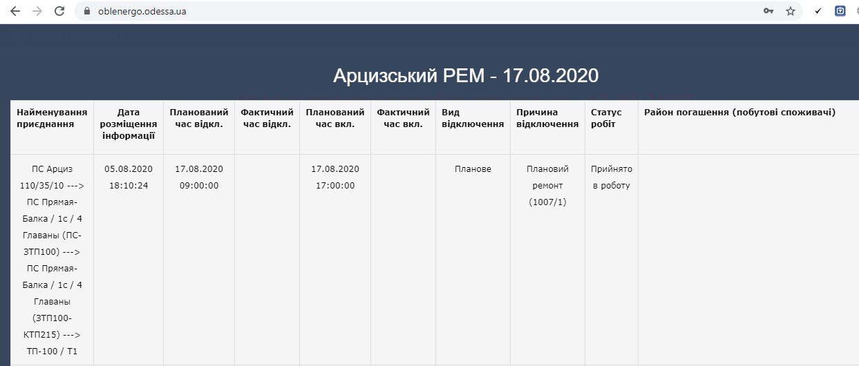 17 августа, в связи с необходимостью проведения ремонтных работ, в трёх населенных пунктах Арцизского района Одесской области могут отключить электрическую энергию.