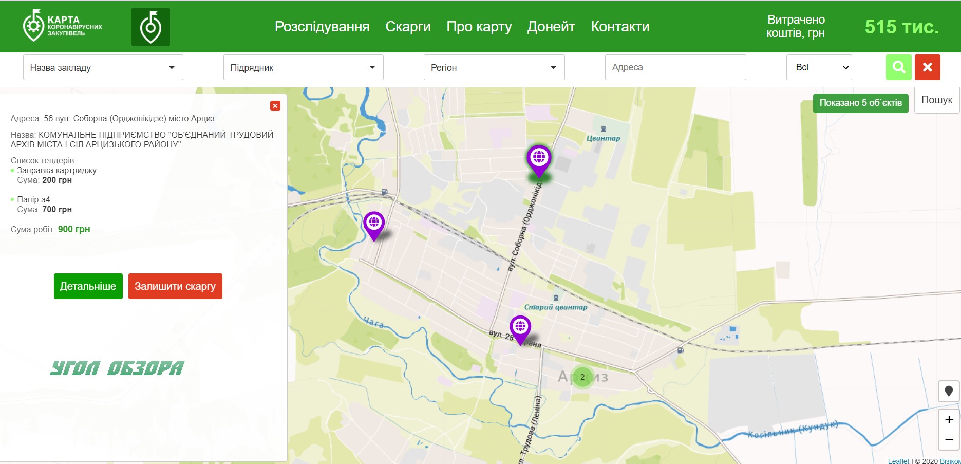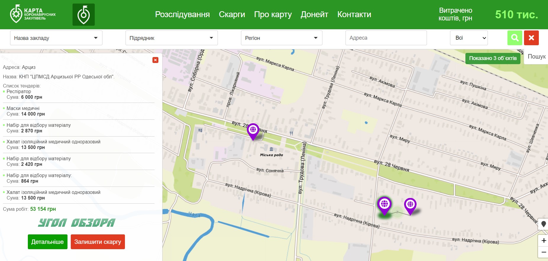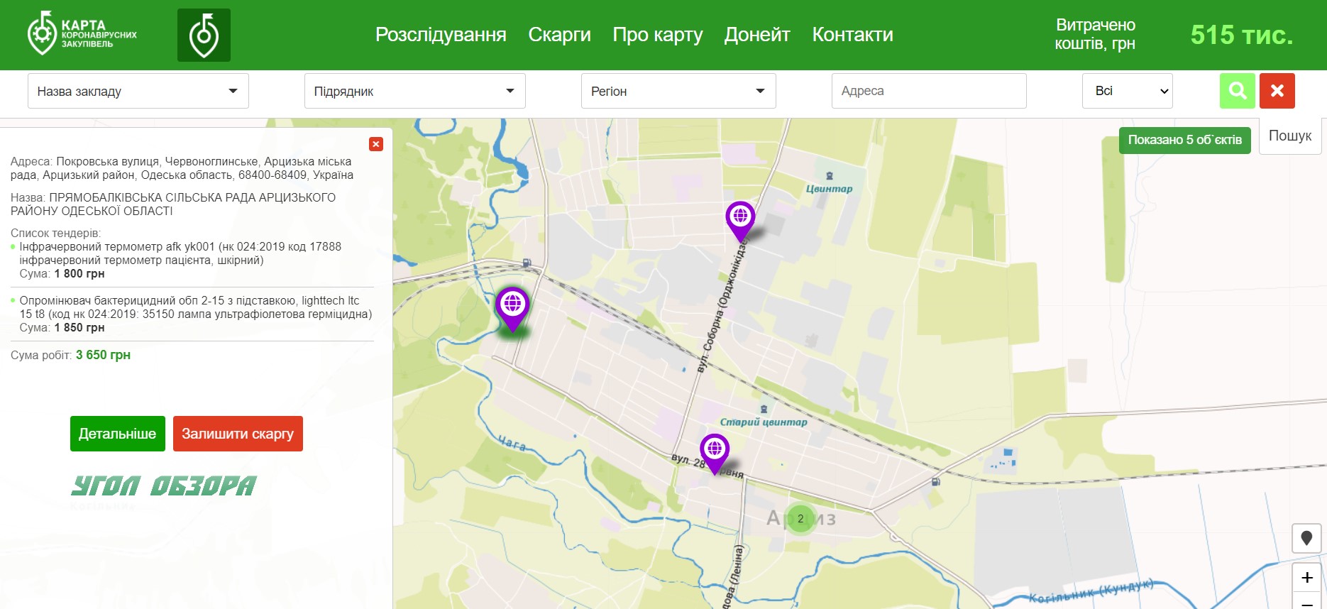 Как свидетельствуют данные всеукраинской карты коронавирусных закупок, в Одесской области на борьбу с СOVID-19 уже потрачено 500 миллионов гривен, в Арцизе на мероприятия, связанные с противодействием СOVID-19 - чуть более 500 тысяч гривен из местных бюджетов - 515 000 гривен.