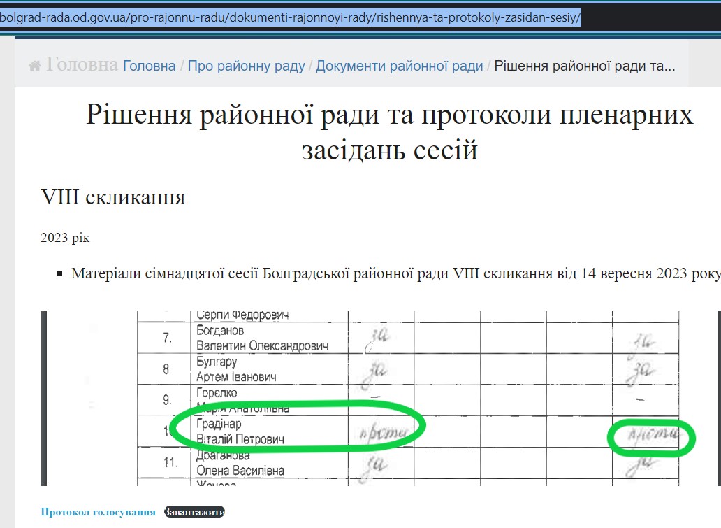14 вересня під час пленарного засідання 17-ї сесії Болградської районної ради відбулася подія, яка не витримує жодної критики… на десятий рік війни депутат райради Градінар Віталій Петрович рішуче в режимі онлайн голосує проти затвердження Програми розвитку та функціювання української мови як державної в усіх сферах суспільного життя в Болградському районі на 2023-2025 рр. Це підтверджується протоколами голосування, які вже викладені на офіційному сайті Болградської районної ради.
