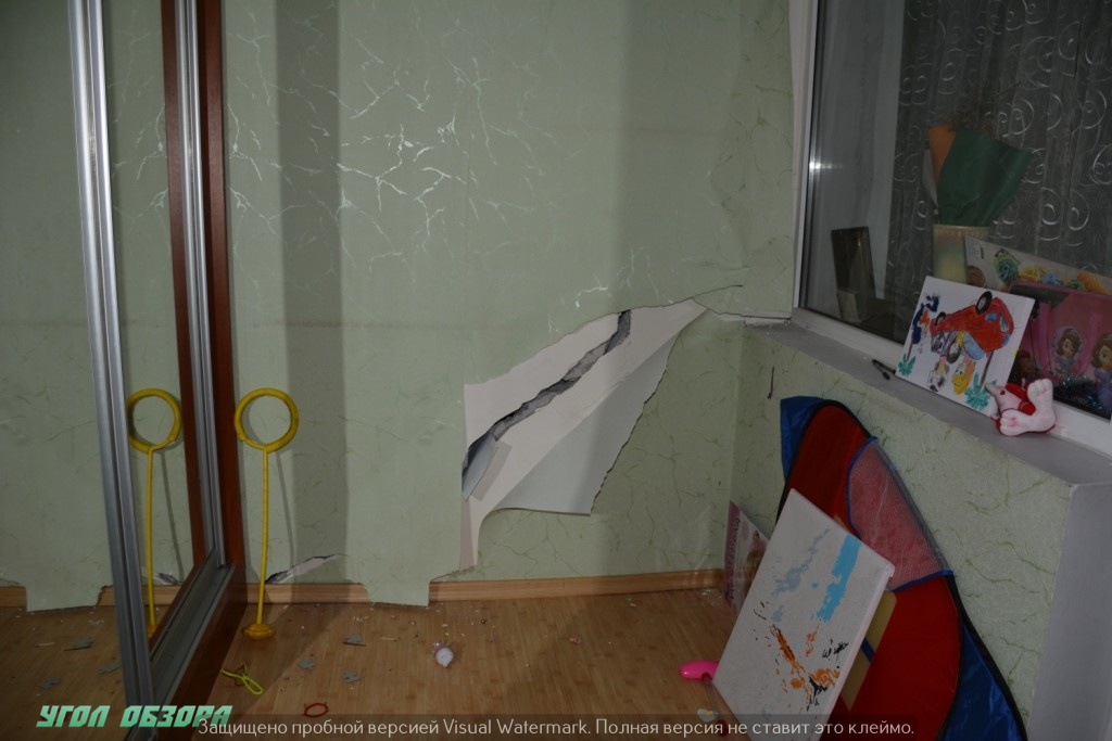 На Нахимова, 427 первые дни начавшегося года не задались. Поначалу люди услышали шум и ощутили толчки, как при землетрясении. В некоторых помещениях осыпалась штукатурка, немного повело дверные и оконные проемы. Больше всех досталось угловой квартире первого этажа, где откололась пристройка с детской и кухней.