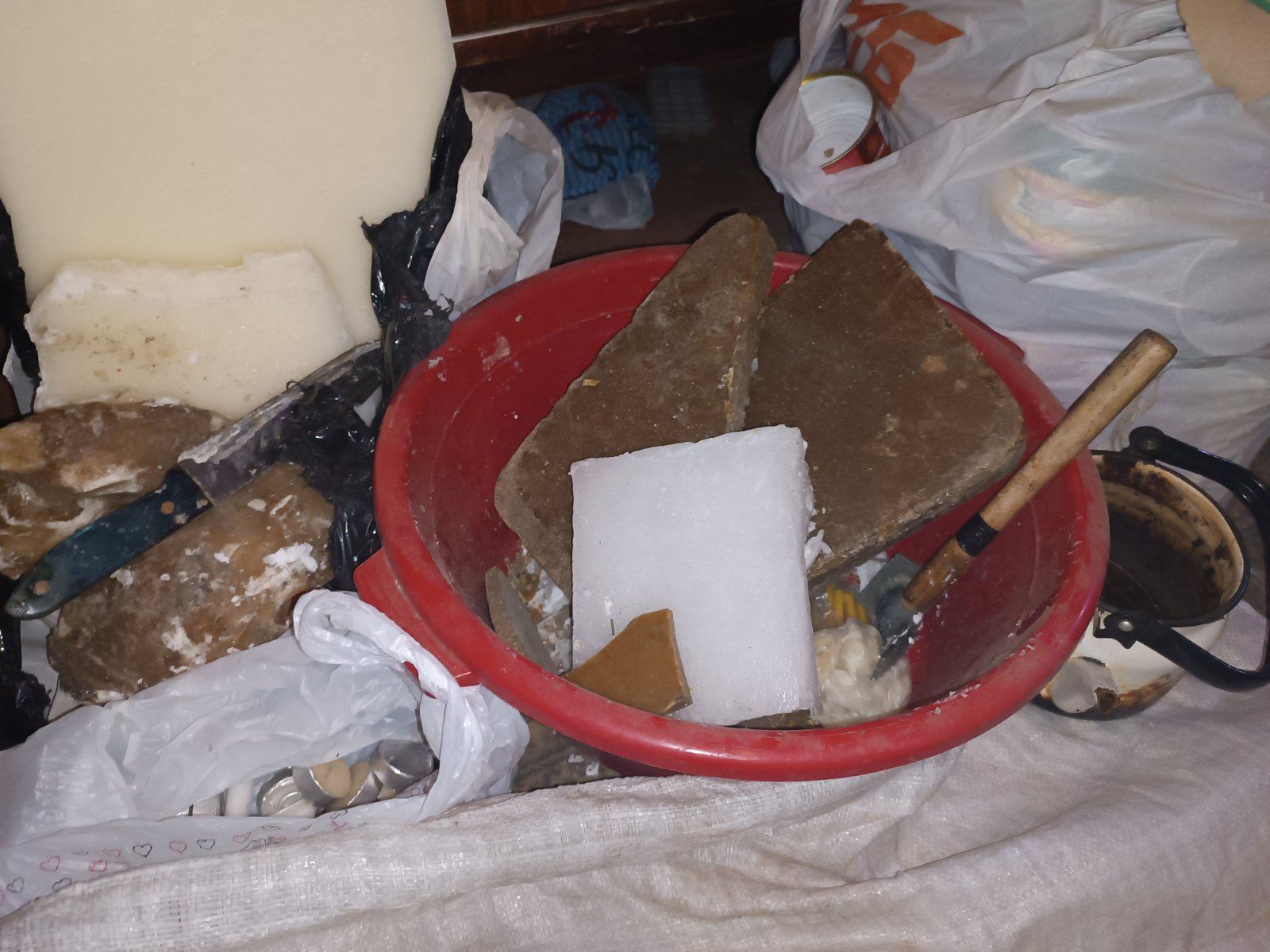 Рахувала перші двісті і дуже раділа, що вдалося зігріти стільки людей. Спочатку робила, не зупиняючись, бо розуміла, що в мене тепло в домі, є тепла ковдра, а вони захищають мене у холодних окопах. А потім вже й перестала рахувати, бо розуміла, що, чим більше зроблю, тим краще. Це при тому, що в мене вже була дитина, і я була при надії за другим. Заливала свічки десь до восьмого місяця вагітності, далі вже був березень, вони були не потрібні. А зараз, у молодшого синочка більш-менш налагодився графік, знову приступаю до роботи. Дістала старі запаси, залишився парафін і віск, баночки доносили люди і сусіди. Багато читаю з приводу виготовлення свічок, шукаю технології. Кожен майстер робить по-своєму, мені подобалось робити на картоні, закручувати равликом і заливати стеарином і воском бджолиним. Бо вони всі коптять, але ця трішки менше. Зараз привезли шишки, їх буду використовувати замість картону. Варю віск, коли чоловік вдома і діти з ним – рубаю і топлю віск в коридорі, а заливаю на спільному із сусідами підвіконні, він дууже смердить і я вдячна своїм сусідам, які разом зі мою терплять цей запах. Намагаюсь варити віск, коли вони на роботі, але все одно.