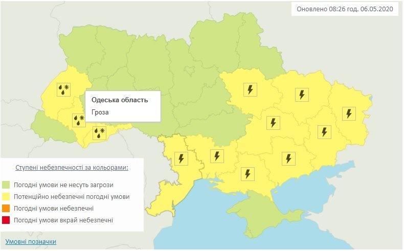 Уже местами немного дождит, однако по прогнозам синоптиков Украинского гидрометцентра, пик непогоды ожидается в середине дня: ожидаются грозы и шквальный ветер.