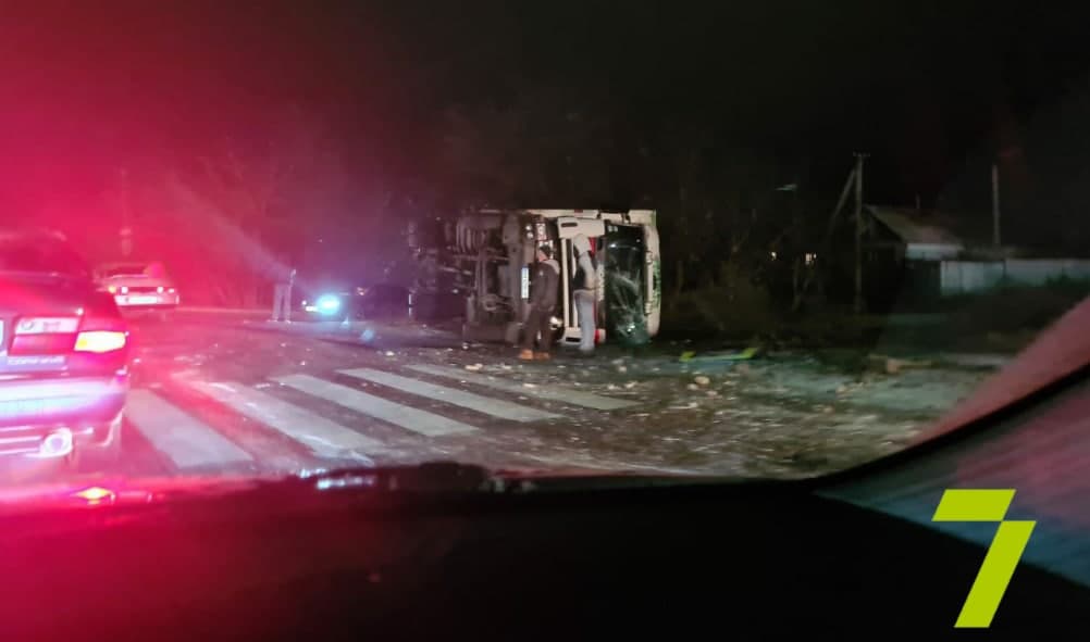 По информации 7 канала, на Кишиневской дороге перевернулся грузовик