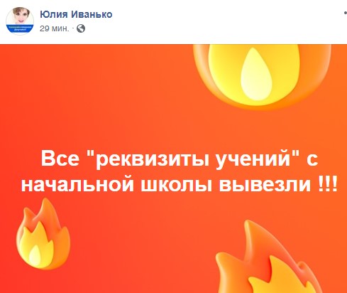 Как сообщает местная жительница, преставитель партии "Слуга народа" Юлия Иванько в соцсети Фейсбук, "реквизиты учений" сегодня из поселковой школы всё же вынесли.
