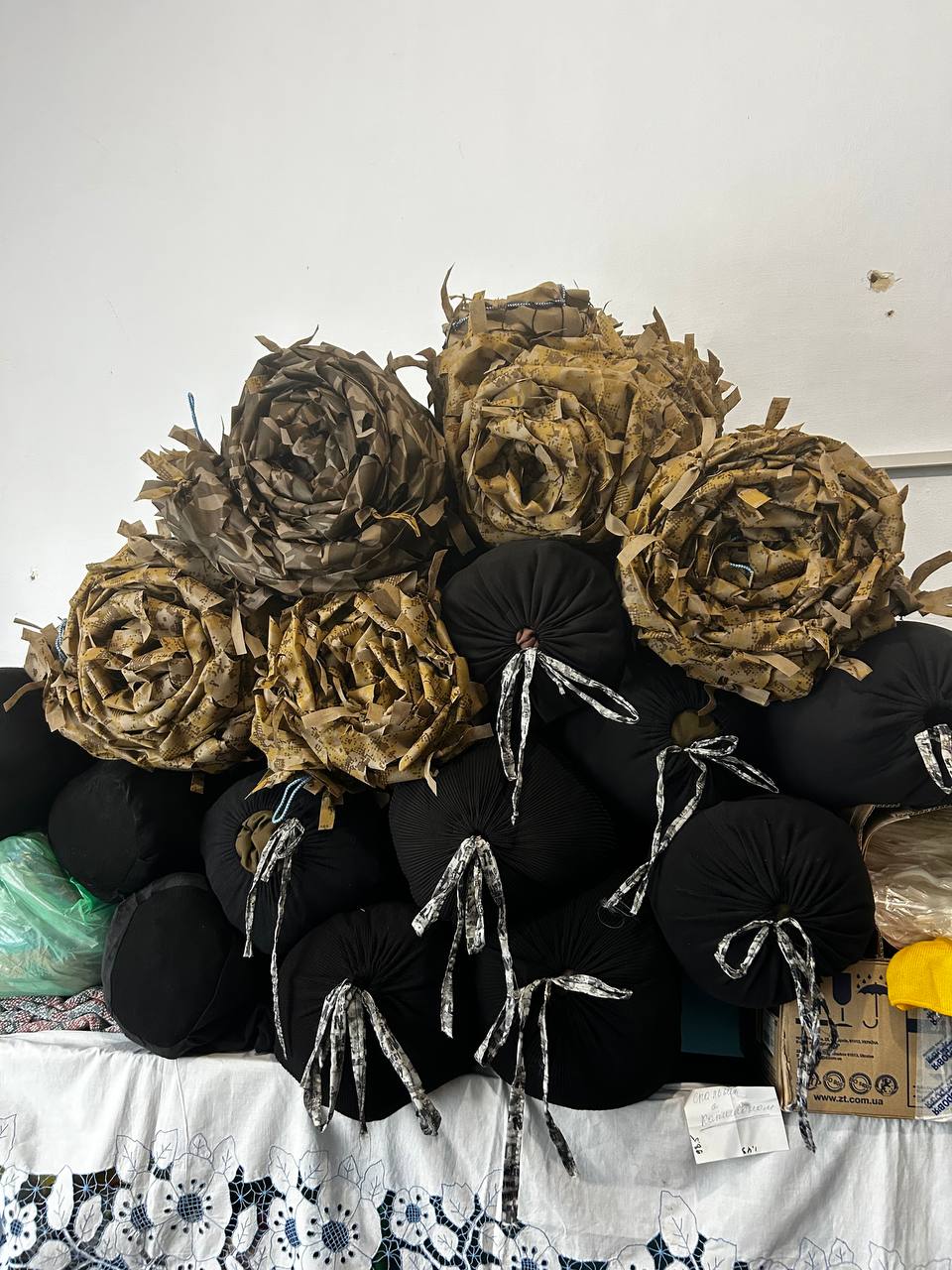 І щодня на робочому столі лежить новий список потреб. Дівчата намагаються допомогти всім, але наразі потреб від хлопців дуже багато, а ресурсів не вистачає. Якщо у вас є бажання і змога допомогти ви можете це зробити через донат, або відправивши дівчата тканини, основи для маскувальних сіток, або інші потрібні речі для їх праці.