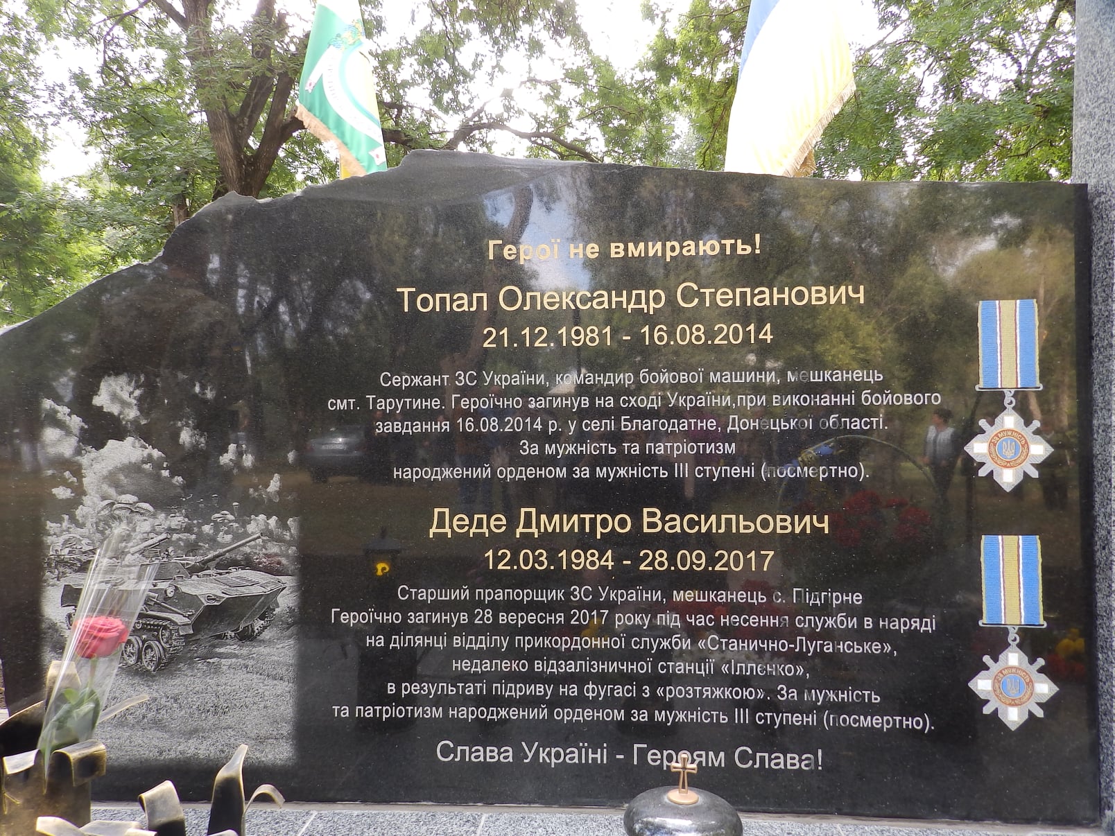 К Дню защитника Украины, Украинского казачества и Покрова Пресвятой Богородицы в п. Тарутино Одесской области в парковой зоне состоялось торжественное открытие мемориала погибшим в зоне АТО - жителям Тарутинщины.
