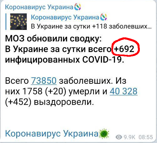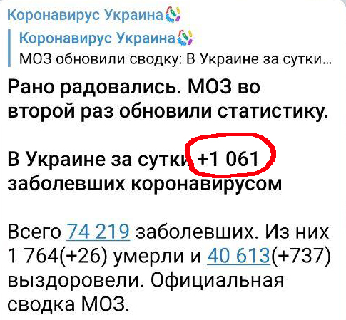 Источник: https://desktop.telegram.org Коронавирус Украина