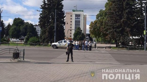 На месте происшествия работают правоохранители и антитеррористический центр СБУ. Также в центре города заметили карету скорой медицинской помощи.