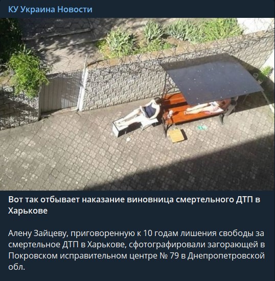 Летом в Телеграм-каналах и соцсетях опубликовали фото, по которым видно, как Зайцева отбывает наказание: