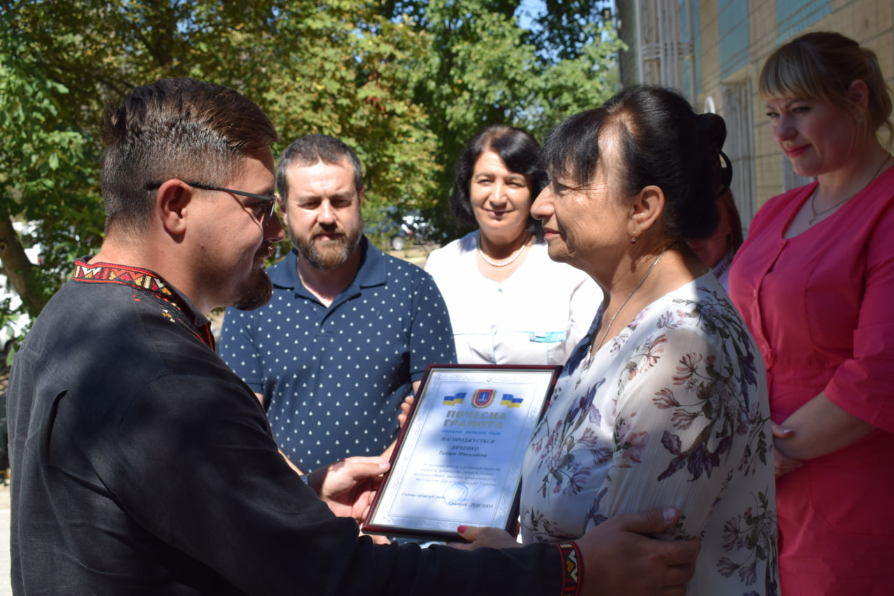 Двох фахівців Арцизької громади нагородили Почесними грамотами Одеської обласної ради. Високу відзнаку вручав радник першого заступника голови Одеської обласної ради Олега Радковського – Сергій Шутов.