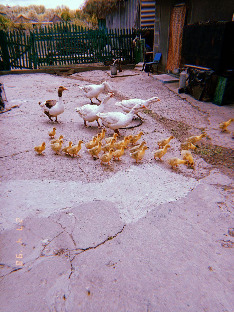 С очень серьезным видом гуси идут на луг, и ты вечно боишься, что гусак не испытывает к тебе симпатии. Кричат утки, летает вальяжно петух.
