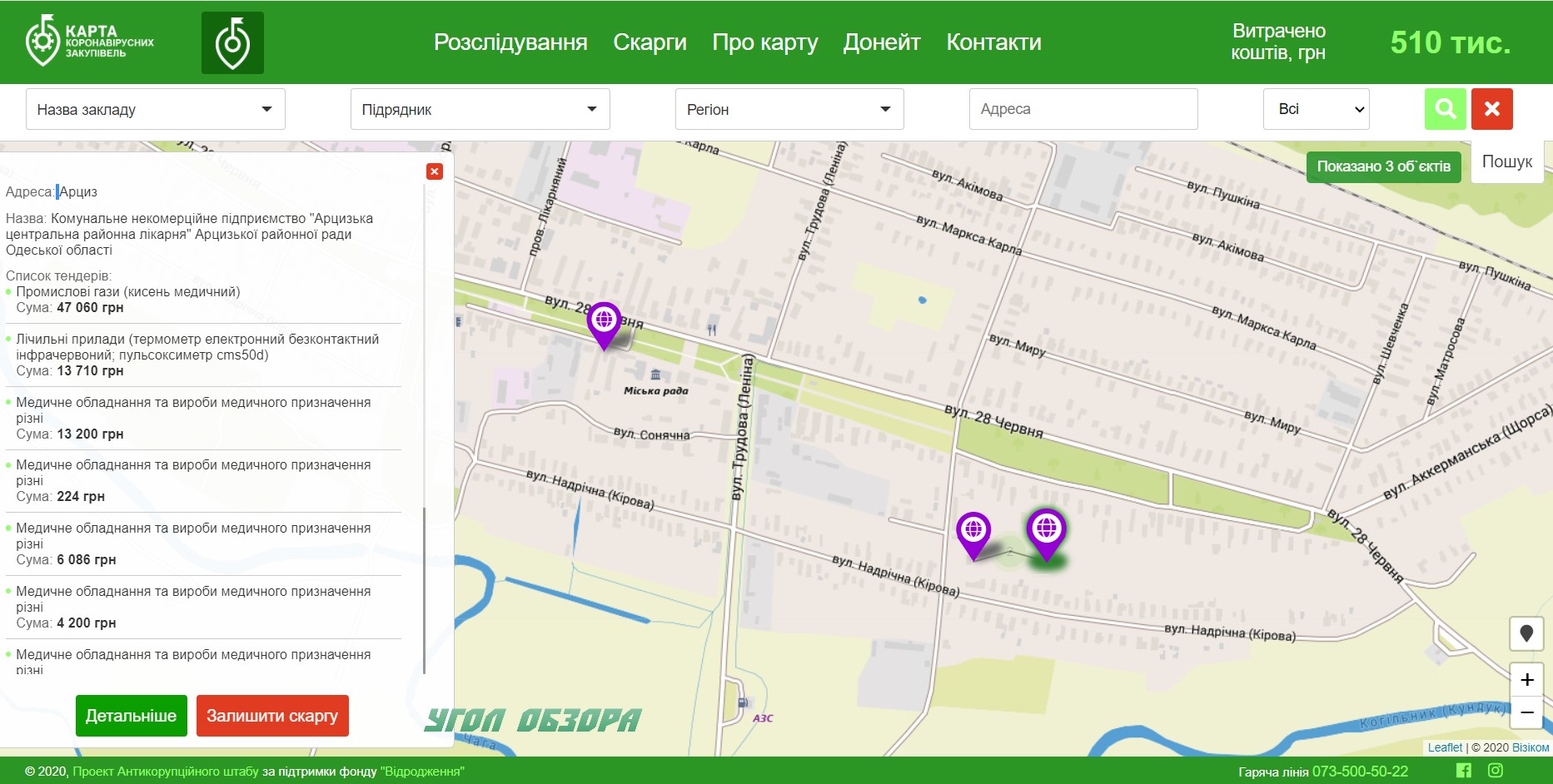 Как свидетельствуют данные всеукраинской карты коронавирусных закупок, в Одесской области на борьбу с СOVID-19 уже потрачено 500 миллионов гривен, в Арцизе на мероприятия, связанные с противодействием СOVID-19 - чуть более 500 тысяч гривен из местных бюджетов - 515 000 гривен.