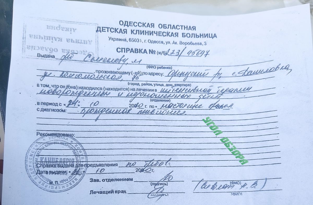 Как рассказал папа малыша редакции "Угол обзора", с 21 октября по настоящее время ребенок находится в Одесской областной детской больнице, в отделении интенсивной терапии новорожденных и недоношенных детей, выписку из предоставляем. Состояние ребёнка оценивают как стабильно тяжёлое, малыш отчаянно борется за жизнь!