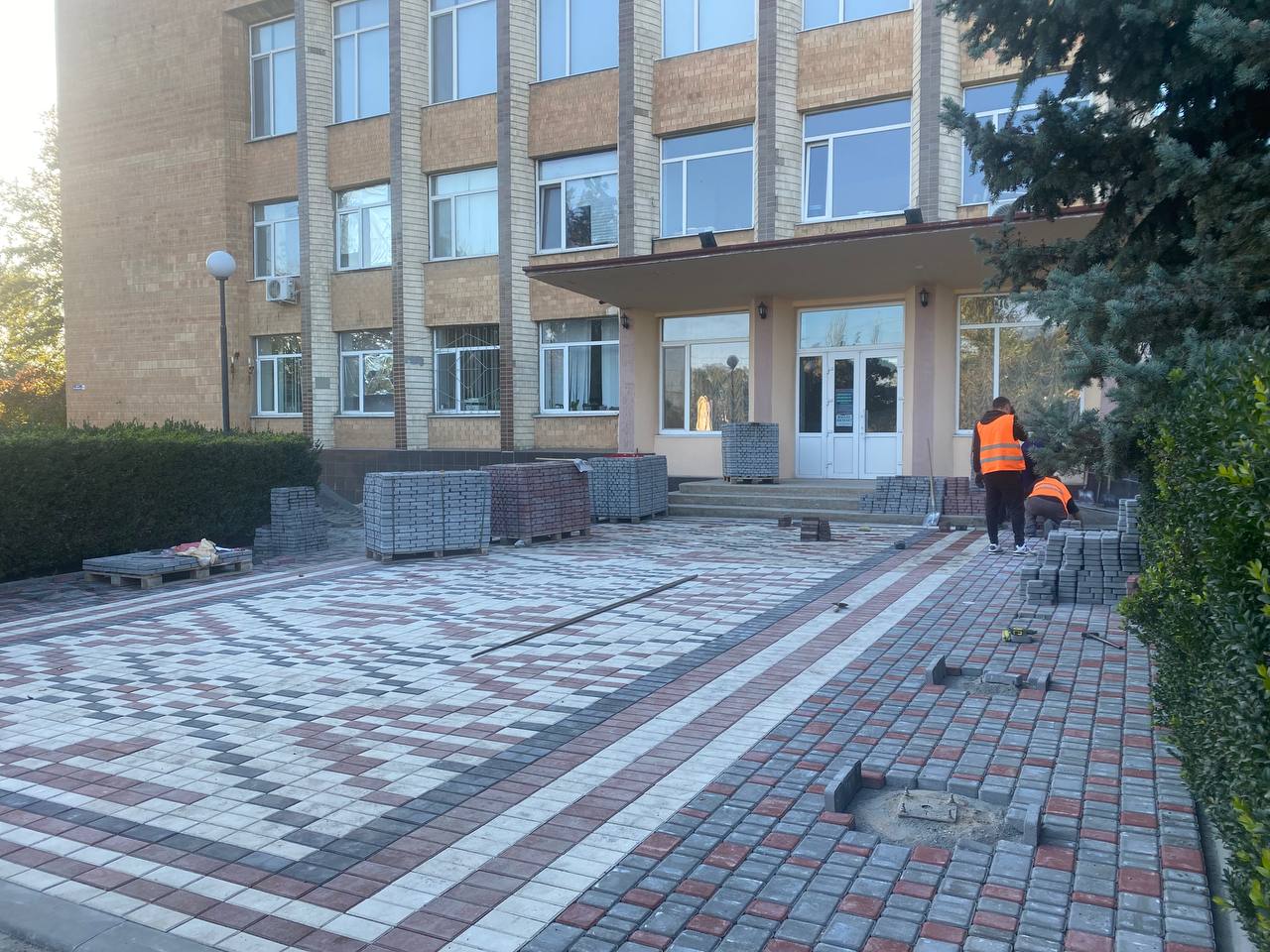 У центрі Арциза, біля будівлі міської ради, зараз ведуться роботи з благоустрою території. Тут укладають плитку та готують місце для встановлення флагштоків, де майорітимуть прапори наших міст-побратимів. Проте цей процес викликав хвилю обурення серед деяких містян, які задаються питанням: чи на часі це під час війни? І чи витрачаються на це бюджетні кошти? Щоб прояснити ситуацію, я звернулася до голови Арцизької громади Сергія Парпуланського.