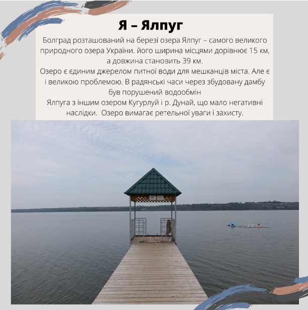«Абетка міста» - так называется этот проект. Каждой букве украинского алфавита соответствует фотография и небольшой текст рассказывающий об исторической достопримечательности или символе города. К примеру, в алфавит попали такие слова как: Гимназия, Инзов, Ялпуг, Парк Пушкина, Любовь.