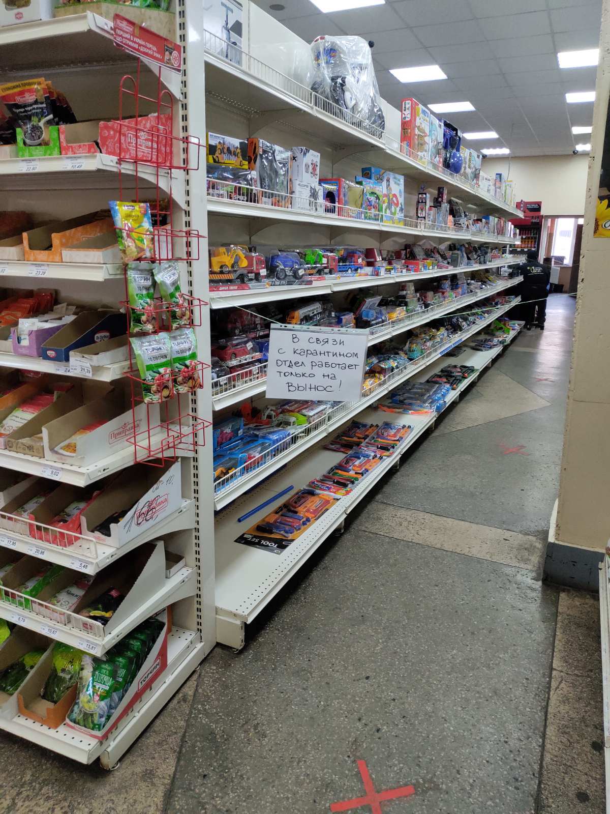 И лишь владельцы двух маркетов в городе – «Юность» и «Гоша» - на второй день локдауна все же внесли коррективы в свои интерьеры, запретив подход к полкам с игрушками и посудой.