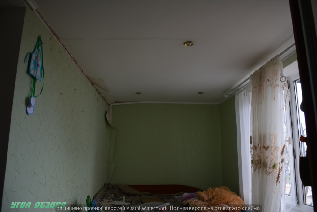 На Нахимова, 427 первые дни начавшегося года не задались. Поначалу люди услышали шум и ощутили толчки, как при землетрясении. В некоторых помещениях осыпалась штукатурка, немного повело дверные и оконные проемы. Больше всех досталось угловой квартире первого этажа, где откололась пристройка с детской и кухней.