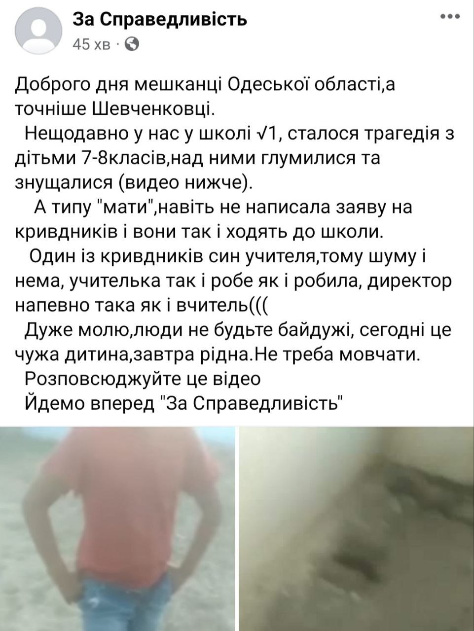 Як йдеться у дописі, знущання над дітьми проходили на території однієї з шкіл села.