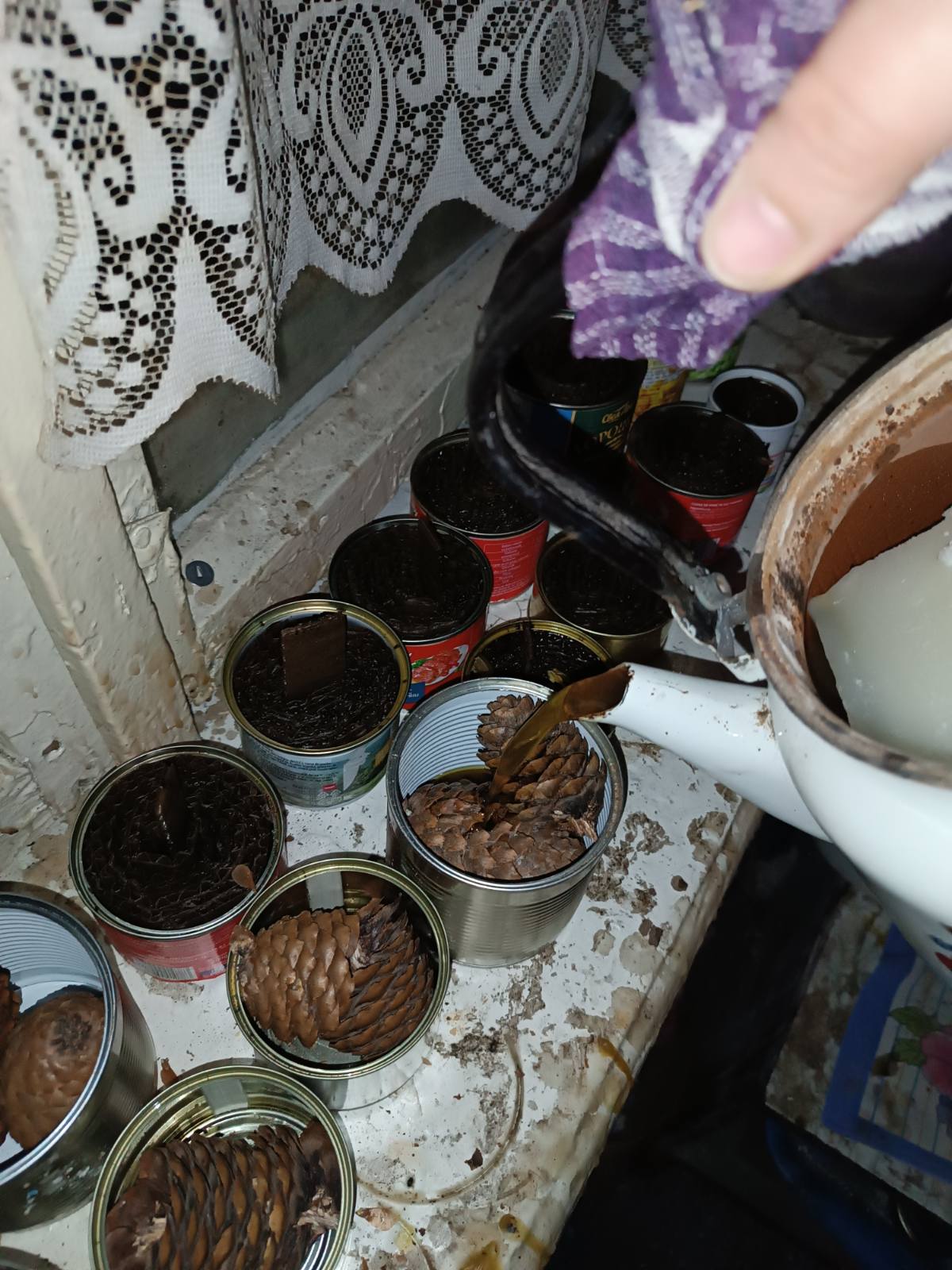 Рахувала перші двісті і дуже раділа, що вдалося зігріти стільки людей. Спочатку робила, не зупиняючись, бо розуміла, що в мене тепло в домі, є тепла ковдра, а вони захищають мене у холодних окопах. А потім вже й перестала рахувати, бо розуміла, що, чим більше зроблю, тим краще. Це при тому, що в мене вже була дитина, і я була при надії за другим. Заливала свічки десь до восьмого місяця вагітності, далі вже був березень, вони були не потрібні. А зараз, у молодшого синочка більш-менш налагодився графік, знову приступаю до роботи. Дістала старі запаси, залишився парафін і віск, баночки доносили люди і сусіди. Багато читаю з приводу виготовлення свічок, шукаю технології. Кожен майстер робить по-своєму, мені подобалось робити на картоні, закручувати равликом і заливати стеарином і воском бджолиним. Бо вони всі коптять, але ця трішки менше. Зараз привезли шишки, їх буду використовувати замість картону. Варю віск, коли чоловік вдома і діти з ним – рубаю і топлю віск в коридорі, а заливаю на спільному із сусідами підвіконні, він дууже смердить і я вдячна своїм сусідам, які разом зі мою терплять цей запах. Намагаюсь варити віск, коли вони на роботі, але все одно.