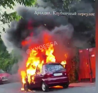 А в районе Аркадии, по пер.Клубничный загорелся автомобиль: