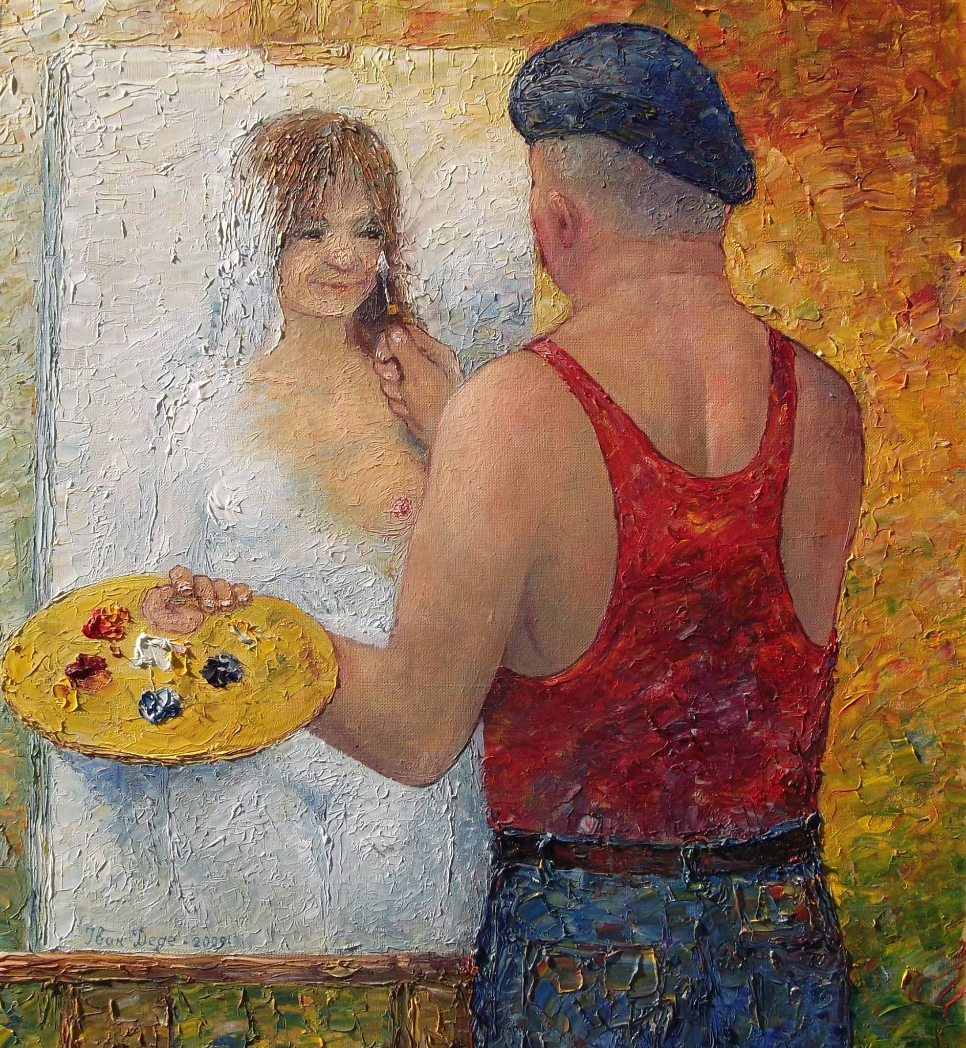 На фото - "Художник", "Автопортрет с женой", работа "Молодое вино":